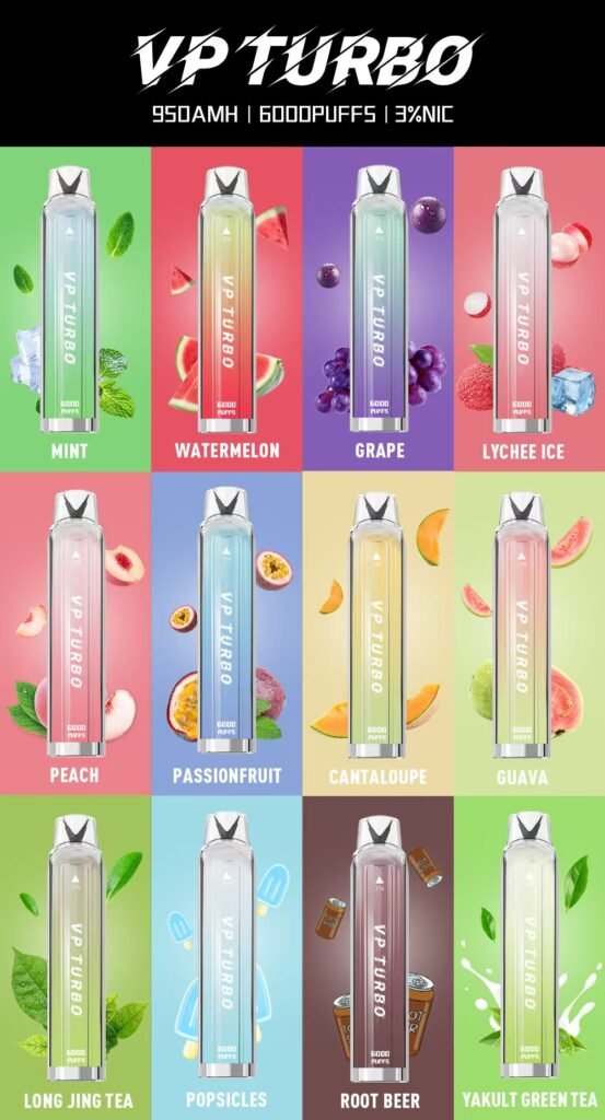 VP Turbo 6000採用簡約輕巧設計,內建10ml大容量煙油,單支可達約6000口,滿足長時間使用需求。多樣口味選擇,包括荔枝、百香果、老冰棍、蜜桃與薄荷,帶來清新多變的口感體驗。拋棄式設計免去充電與更換煙彈的麻煩,操作簡單,出差或日常隨身攜帶都相當便利。